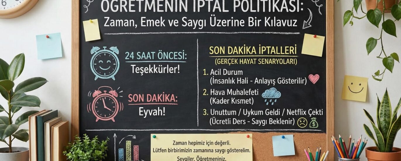 Çoğu öğretmen, veli ile arasındaki samimiyete güvenerek yazılı veya sözlü bir kural koymaktan çekinir. “Ayıp olur” düşüncesi, uzun vadede öğretmenin tükenmesine (burnout) neden olur. Oysa bir iptal politikasına sahip olmak: